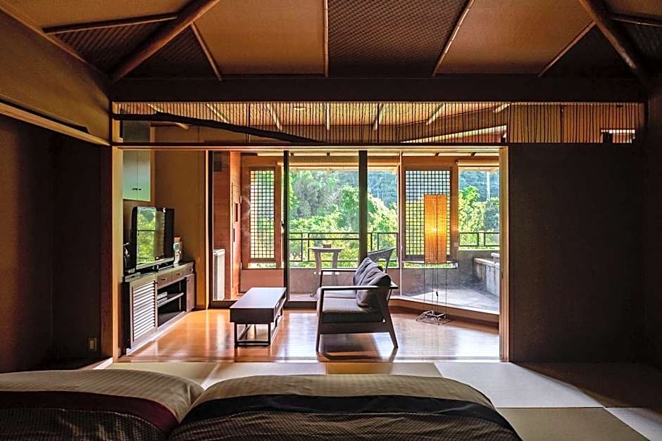 The hot tub and private open-air bath are the special features of this family room. Providing free toiletries and bathrobes, this family room includes a private bathroom with a bath, a shower and a bidet. The air-conditioned family room provides a flat-screen TV, soundproof walls, a tea and coffee maker, a seating area as well as mountain views. The unit offers 2 beds and 2 futons.